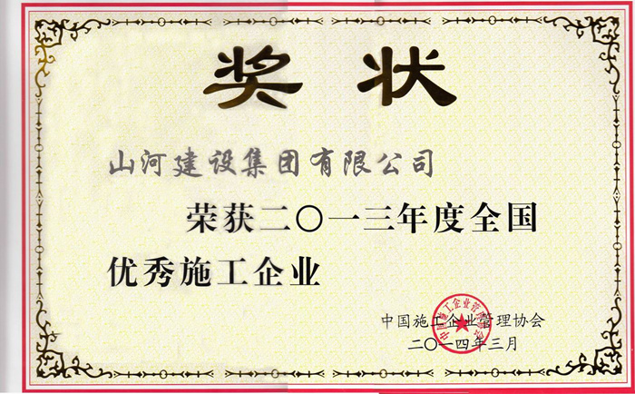 九游网页版·官方版在线入口集团荣获2013年度“全国优秀施工企业”称号