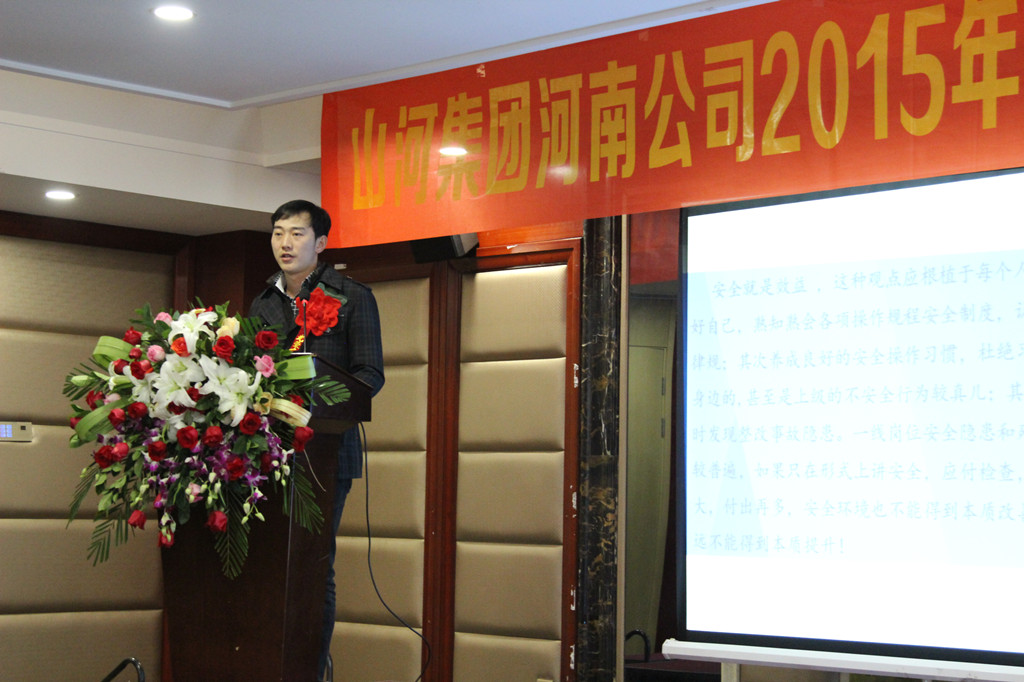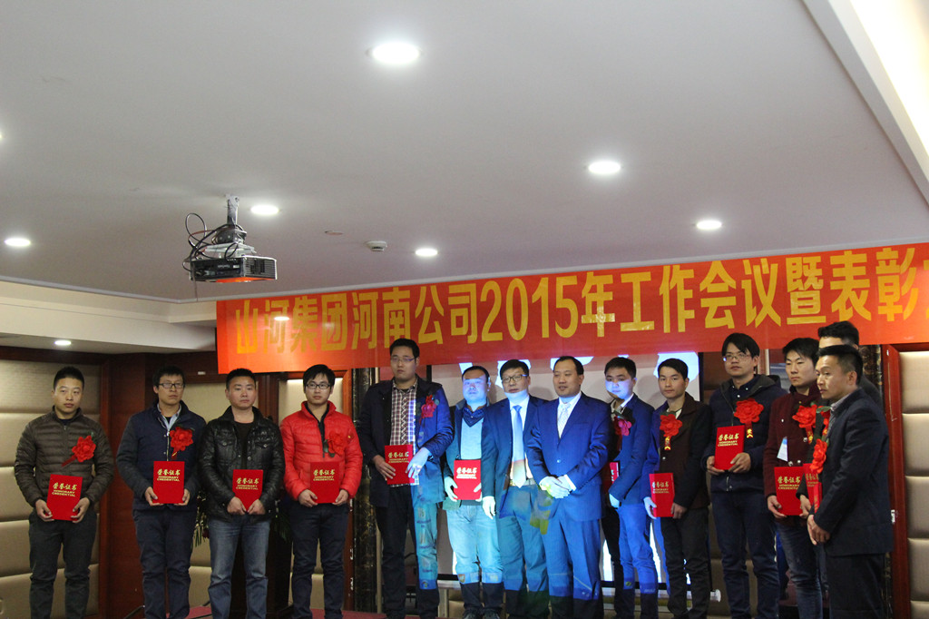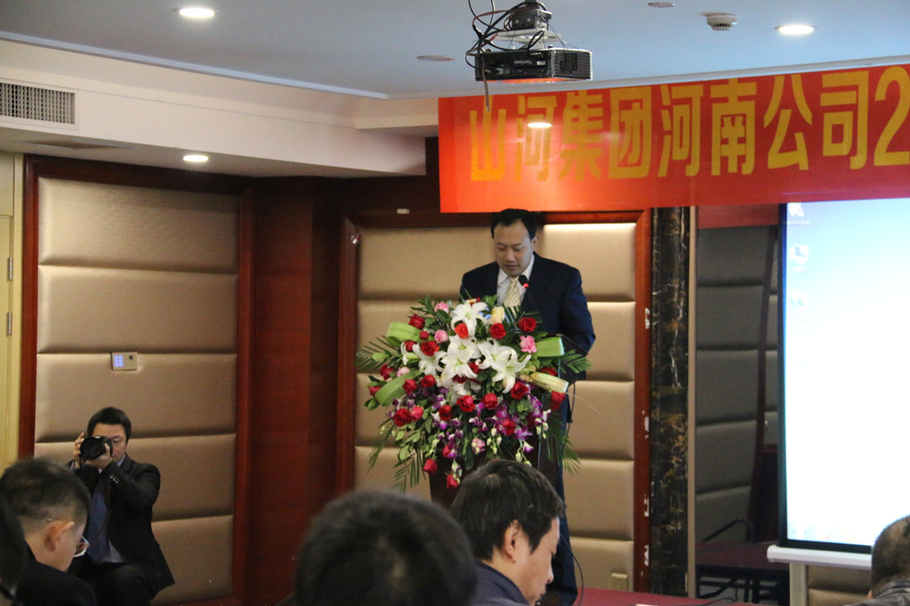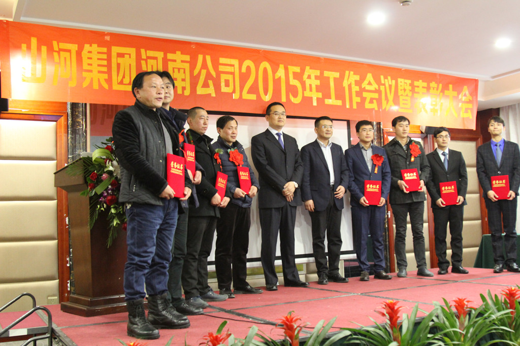 河南公司总经理马文敏代表河南公司对2015年各项工作情况进行汇报,深刻分析了当前面临的发展形势和工作中存在的不足,明确了2016年河南公司在规章制度、团队建设、工程创优方面的重点工作任务:完善各项目制度,结合集团公司区域管理办法,制定一套适合河南公司的规章制度;继续抓团队建设及专业人才的引进,人才是企业持续发展并强大的必要因素;大力推行安全文明施工标准化,严格规范各项目制度,加大创优工作力度,鼓励各项目创优夺杯,区域公司给予支持帮助,力争突破。马总勉励大家要继续发扬精诚团结、共同努力的精神,在新的一年里以更加饱满的工作热情为公司的发展增添新的动力。
