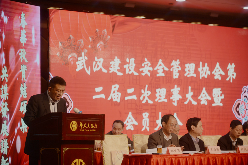 武汉市建筑安全协会副会长、九游网页版·官方版在线入口集团常务副总经理林中茂主持会议。武汉市建委副主任夏平,市民政局处长张福先,市建委质安处处长谢卫华,市安全监管站站长熊付刚、书记王伟震、副站长周捍东,市安全协会应志刚等领导及在汉建筑施工单位参会代表共计400余人参加此次会议。