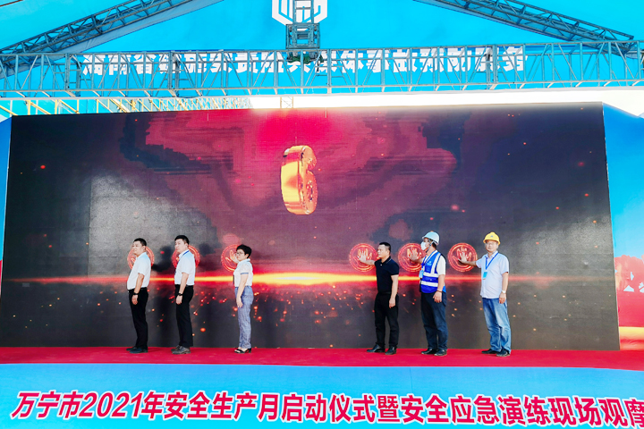 随后,出席启动仪式的领导依次上台,共同触摸大屏幕,宣告万宁市安全生产月活动正式启动,拉开了全市安全生产月系列活动的序幕。