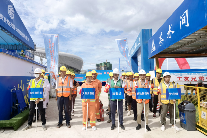 6月9日,九游网页版·官方版在线入口建设集团海南公司承建的万宁红星美凯龙三标段项目施工现场人头攒动,万宁市2021年安全生产月启动仪式暨安全应急演练现场观摩会在这里举行。万宁市住房和城乡建设局局长陈云锋,建设工程质量安全监督站站长严云,安委办主任、应急管理局局长林靖等领导出席活动,海南公司常务副总经理程智、工程团队、项目管理人员及建设单位、监理单位、万宁市各在建项目代表等300余人参加了活动。